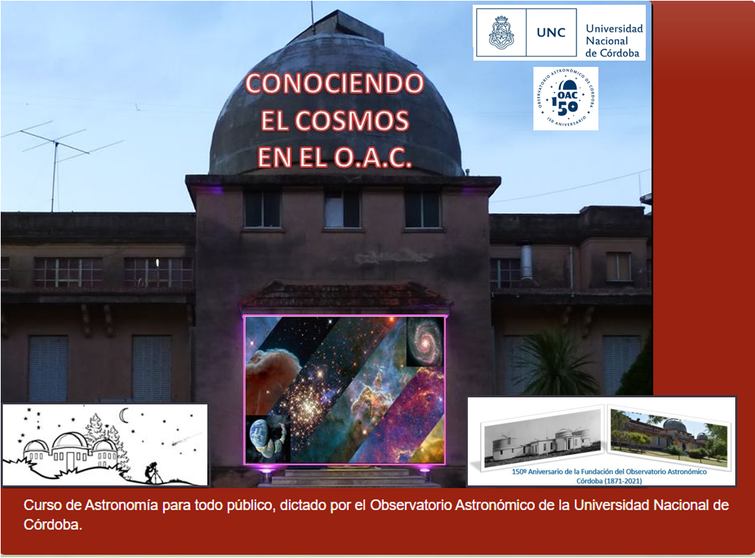 Se trata de la versión online del tradicional curso para todo público, Conociendo el Cosmos, que se realiza desde el OAC en el marco de los festejos por su aniversario 150. Está destinado a público en general y no requiere conocimientos previos.